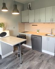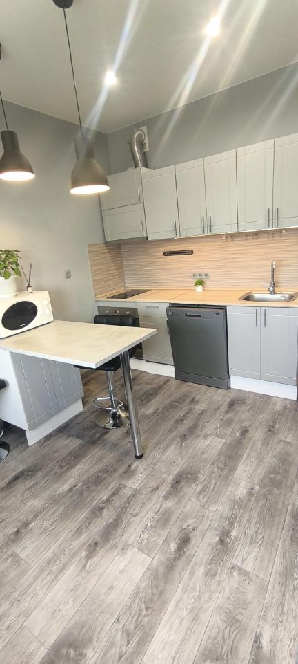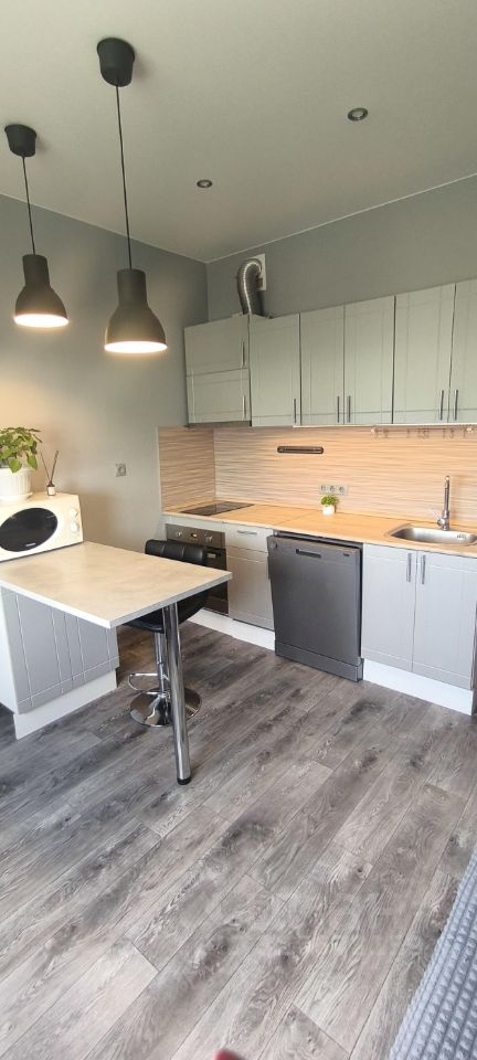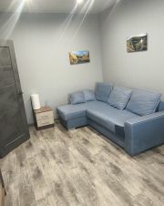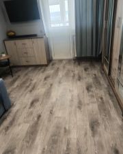 Квартира оформлена в спокойных тонах(стекло холст и краска Tikkurila) и укомплектована мебелью.