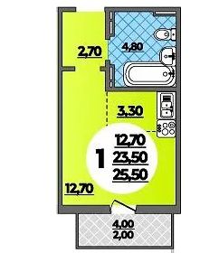 Продаётся студия в сданном доме (Литер 8.3), срок сдачи: III-кв. 2023, общей площадью 25.5 кв.м., на 16 этаже. ВЫГОДНОЕ РАСПОЛОЖЕНИЕ