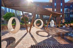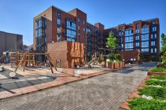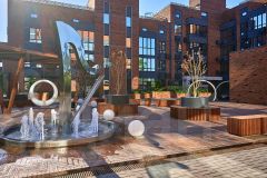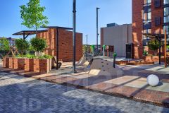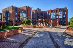 - Территория комплекса отличается роскошным озеленением, что создаёт комфортную среду для отдыха и прогулок. На территории предусмотрены коммерческие площади для магазинов, кафе и других сервисов, обеспечивающих комфорт жителей.