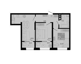 Общая площадь57,4 м²