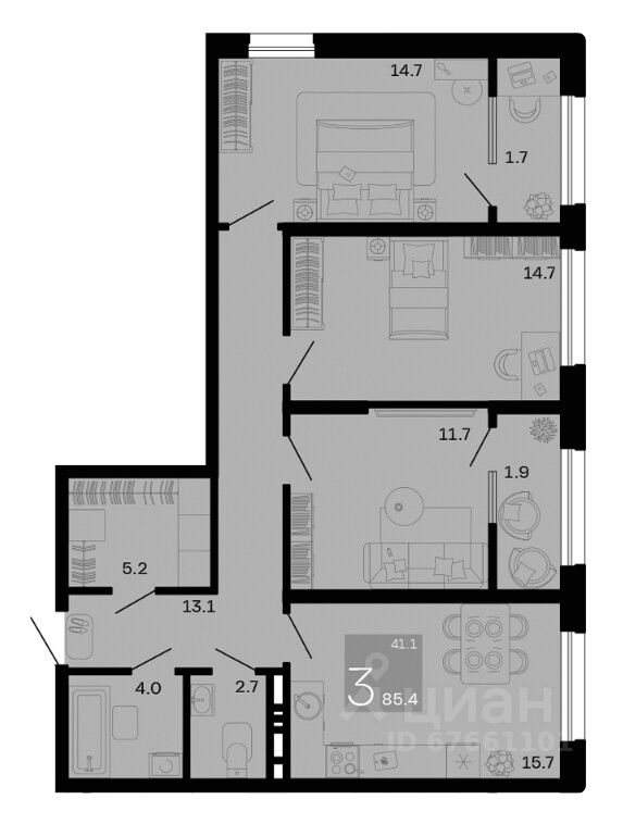 Общая площадь85,4 м²