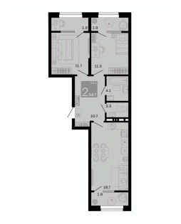Площадь кухни18,7 м²