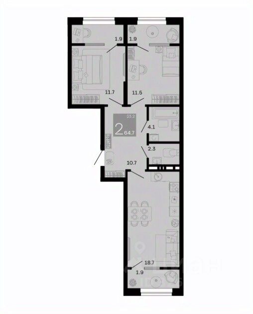 Общая площадь64,7 м²