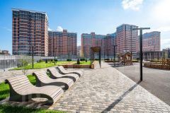 На территории комплекса, авторский парк, аллеи, фонтан, скейт парк, ролледром, спортивные площадки, кафе с летними террасами, кинотеатр на открытом воздухе, фуд-корт, торгово-развлекательный центр, магазины, салоны красоты, храм.