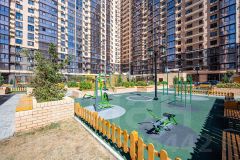 У дома закрытая территория со своими современными спортивными и детскими площадками. Имеется подземный паркинг. В доме 3 скоростных лифта.