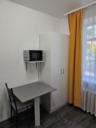 Все помещения (студии) оборудованы всем необходимым для комфортного проживания, установлена новая мебель (кровати, столы, стулья, шкафы, полки и т.д.), а так же оборудованы спальные места (матрасы, подушки, одеяла, покрывала, полотенца, постельные принадлежности). Все новое!!! Кухни оборудованы индукционными плитами, всей необходимой посудой и кухонным инвентарем!