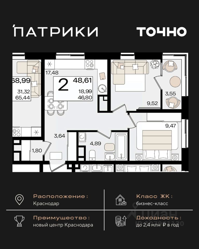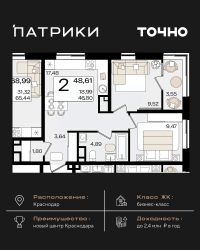 Флагманский проект группы компаний Точно - жилой комплекс бизнес-класса Патрики, это 10 домов разной этажности расположившихся на 28,5 гектарах. Жилой комплекс с концепцией город в город - прогулочные аллеи, парковая территория, 3 детских сада, 2 школы - одна из которых частная, Гранд аллея с ресторанами, фонтанами и модными бутиками, уникальные мафы и ландшафтный дизайн, создают особую атмосферу - место в котором хочется находиться. В Патриках предусмотрен и креативный кластер Цех, который включает в себя пространство для коворкинга, фудкорт, бутики, детский комплекс, лектории, фитнес-клуб Баланс с волной для сёрфа. Но и это еще не все ГК Точно уважает историю, поэтому мы сохранили 2 башни - наследство от завода "Сельмаш" исторический арт-объект назвали Мастер и Маргарита.