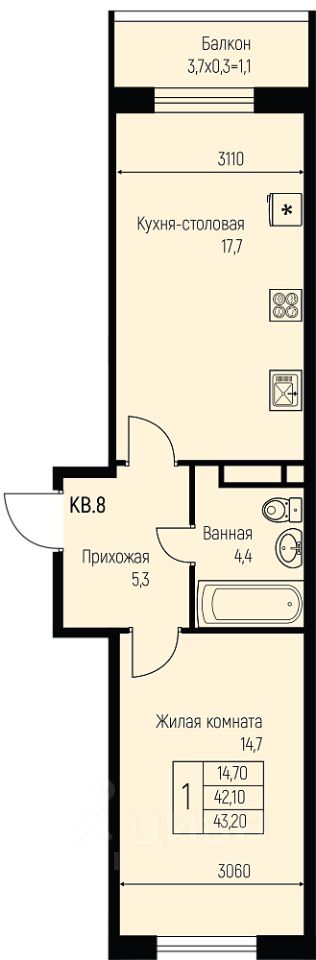 Продаётся 1-комнатная квартира в строящемся доме (Литер 10), срок сдачи: IV-кв. 2025, общей площадью 43.2 кв.м., на 2 этаже. Новый жилой комплекс "Nova Vita" от застройщика МЕТРИКС DEVELOPMENT расположен по адресу Краснодар, посёлок Берёзовый, улица имени А.Н. Лодыгина.