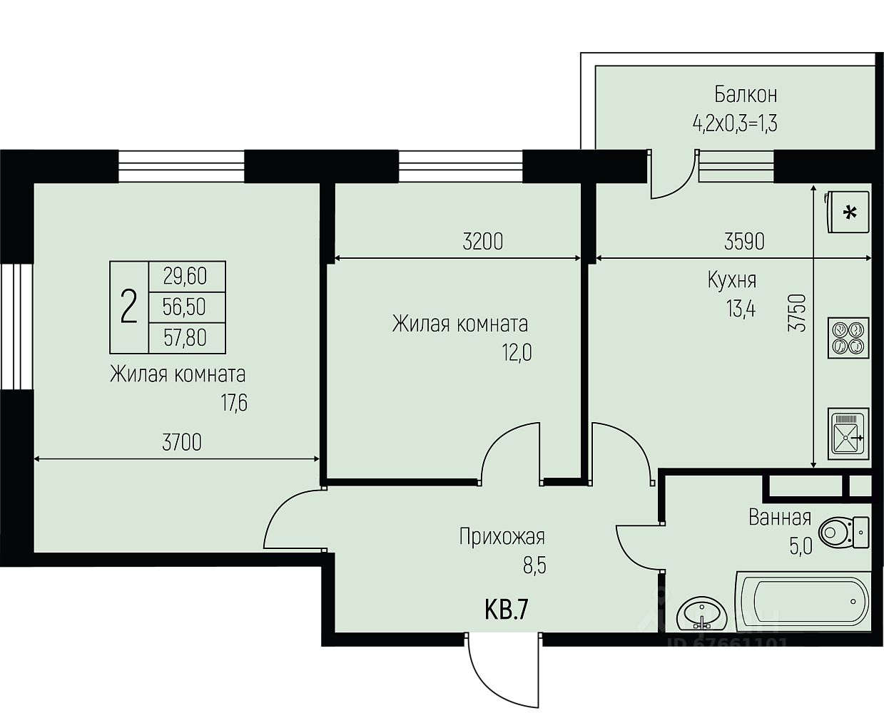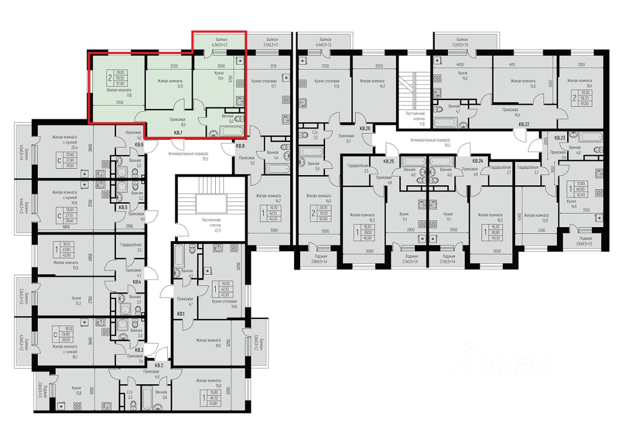 57,8 м²