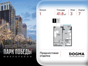 Срок сдачи: 2 кв. 2026, общей площадью 41.8 кв.м., на 3 этаже.