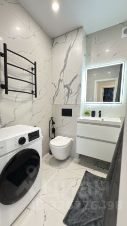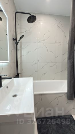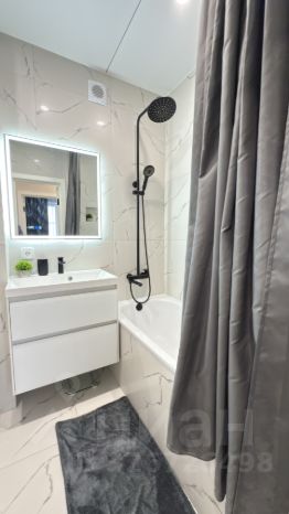 Ванная комната оформлена в современном стиле с качественной сантехникой.