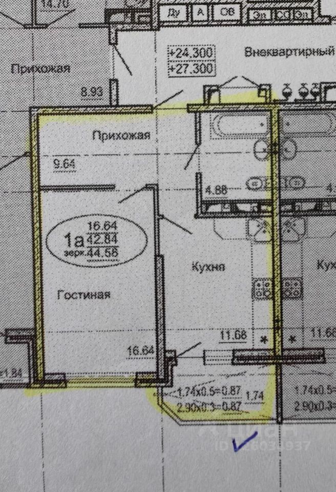 1-к. квартира, 42.84м², 10/24 эт. с ремонтом в ЖК возле Парка Солнечный Остров