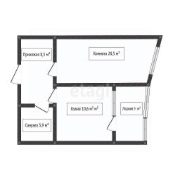 Площадь квартиры 43,5 кв. (по Выписке), лоджия 5 кв, санузел совмещен, комната 20, 5 кв.м., кухня 10,6 кв.м., высота потолков 2,8 м. Расположена квартира на 9 этаже.