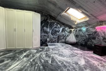 Интересная планировка квартиры: на первом этаже находится большая кухня-гостиная, с выходом на балкон который застеклен МПО, санузел. На втором этаже 2 комнаты (одна используется как хозяйственное помещение)