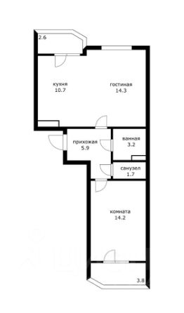 Общая площадь квартиры с учётом лоджий составляет 56 квадратных метров. Планировка квартиры — на две стороны. Кухня - 11м2 с выходом на лоджию, гостиная - 14,3 м2, спальня площадью - 14,2 м2 с выходом на лоджию.