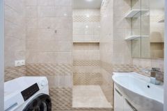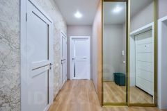 В прихожей есть встроенный шкаф для верхней одежды. В квартире раздельный санузел, в одном из которых установлена стиральная машина, а также шкафы для хранения вещей.