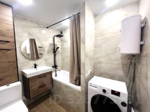 Санузел отделан керамической плиткой, установлен необходимый комплект сантехники.