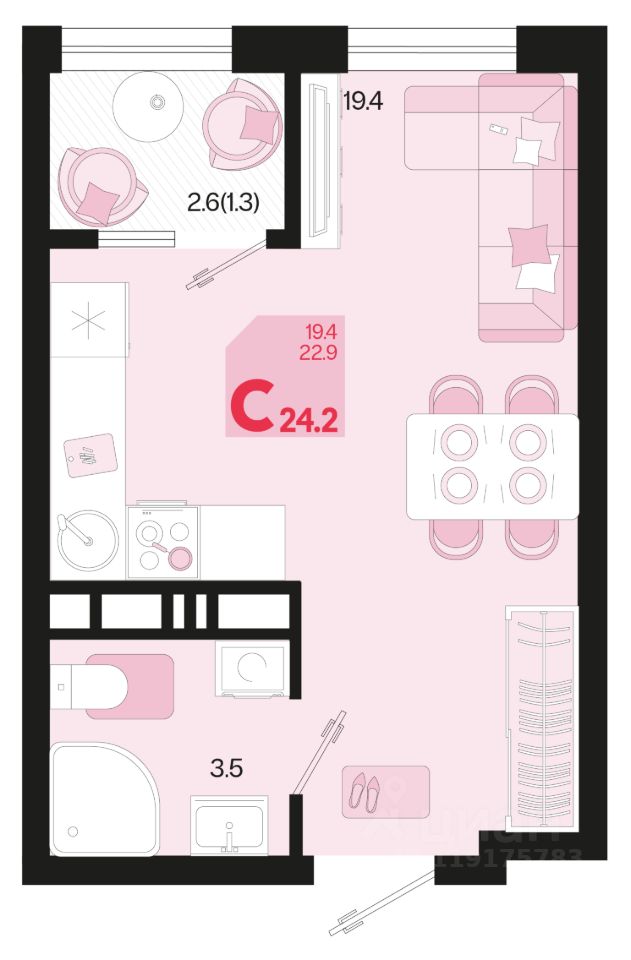 Продаётся 1-комнатная квартира в строящемся доме (Квартал 1.1 - Литер 2), срок сдачи: II-кв. 2026, общей площадью 24.2 кв.м., на 8 этаже. Жилой район "Первое