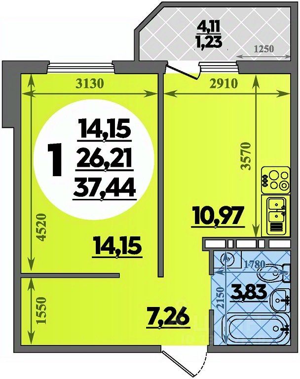 Общая площадь37,44 м²