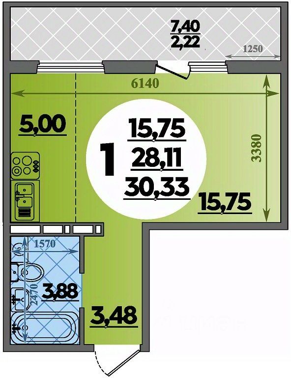 Продаётся студия в строящемся доме (Литер 2), срок сдачи: III-кв. 2027, общей площадью 30.33 кв.м., на 2 этаже.