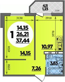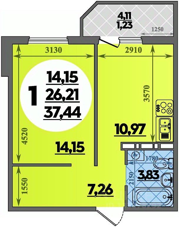 Продаётся 1-комнатная квартира в строящемся доме (Литер 2), срок сдачи: III-кв. 2027, общей площадью 37.44 кв.м., на 5 этаже.