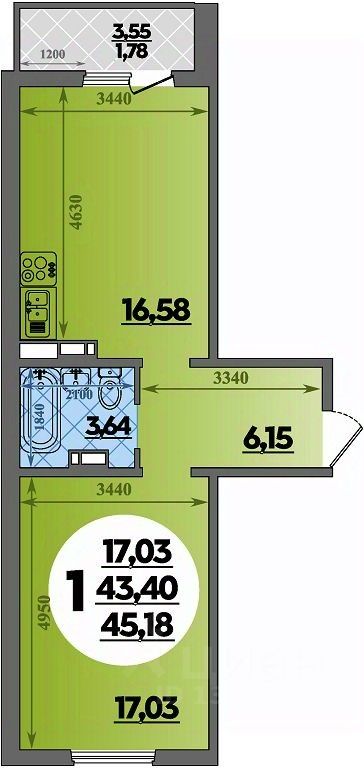 Продаётся 1-комнатная квартира в строящемся доме (Литер 2), срок сдачи: III-кв. 2027, общей площадью 45.18 кв.м., на 7 этаже.