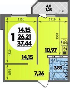 Общая площадь37,44 м²
