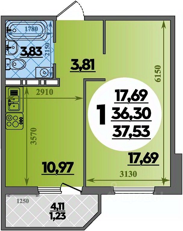 Продаётся 1-комнатная квартира в строящемся доме (Литер 2), срок сдачи: III-кв. 2027, общей площадью 37.53 кв.м., на 7 этаже.