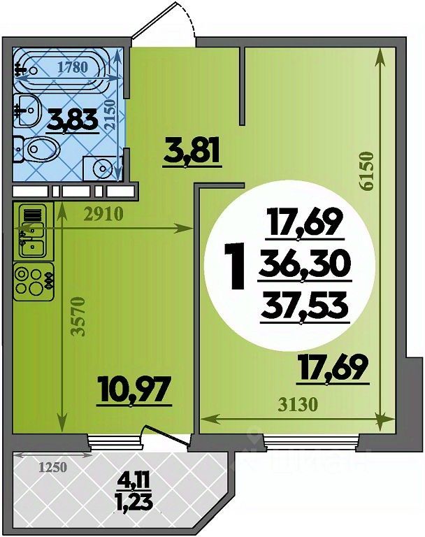 Продаётся 1-комнатная квартира в строящемся доме (Литер 2), срок сдачи: III-кв. 2027, общей площадью 37.53 кв.м., на 8 этаже.
