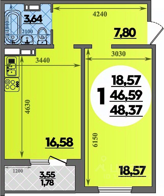 Продаётся 1-комнатная квартира в строящемся доме (Литер 2), срок сдачи: III-кв. 2027, общей площадью 48.37 кв.м., на 1 этаже.