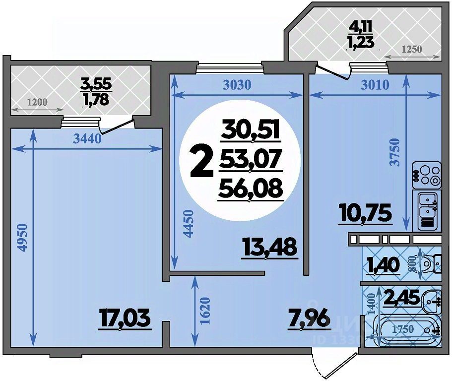 Продаётся 2-комнатная квартира в строящемся доме (Литер 2), срок сдачи: III-кв. 2027, общей площадью 56.08 кв.м., на 2 этаже.