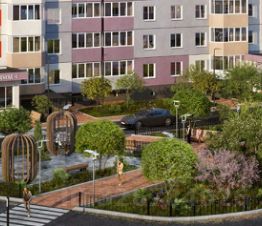 Уютный двор, в котором находятся современные детские и спортивные площадки с безопасным прорезиненным покрытием, уличные тренажеры, а также комфортные зоны отдыха. В таком дворе приятно отдыхать или заниматься спортом взрослым и очень интересно играть детям.