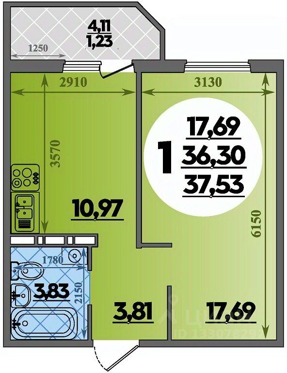 Общая площадь37,53 м²