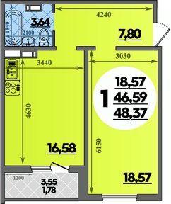 Продаётся 1-комнатная квартира в строящемся доме (Литер 2), срок сдачи: III-кв. 2027, общей площадью 48.37 кв.м., на 4 этаже.