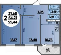 Продаётся 2-комнатная квартира в строящемся доме (Литер 2), срок сдачи: III-кв. 2027, общей площадью 55.44 кв.м., на 6 этаже.