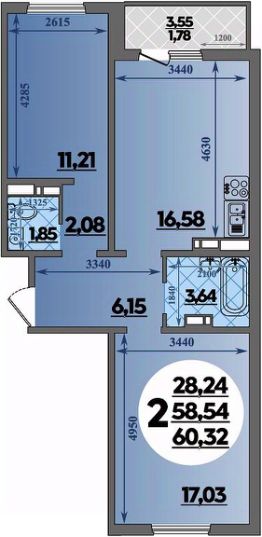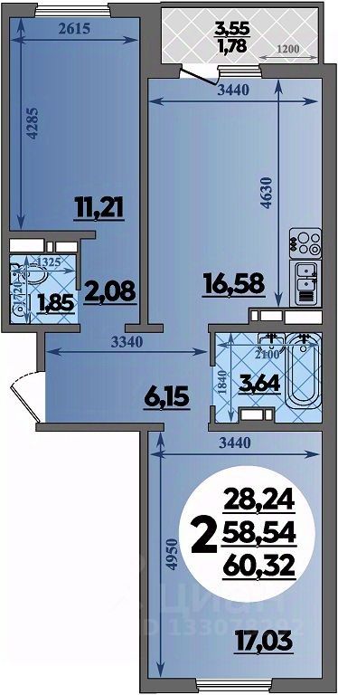 Продаётся 2-комнатная квартира в строящемся доме (Литер 2), срок сдачи: III-кв. 2027, общей площадью 60.32 кв.м., на 6 этаже.