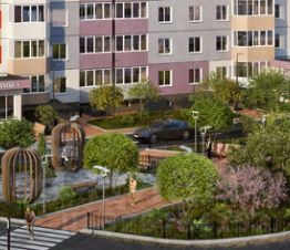 Уютный двор, в котором находятся современные детские и спортивные площадки с безопасным прорезиненным покрытием, уличные тренажеры, а также комфортные зоны отдыха. В таком дворе приятно отдыхать или заниматься спортом взрослым и очень интересно играть детям.