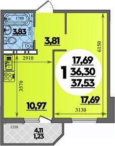 Продаётся 1-комнатная квартира в строящемся доме (Литер 2), срок сдачи: III-кв. 2027, общей площадью 37.53 кв.м., на 9 этаже.