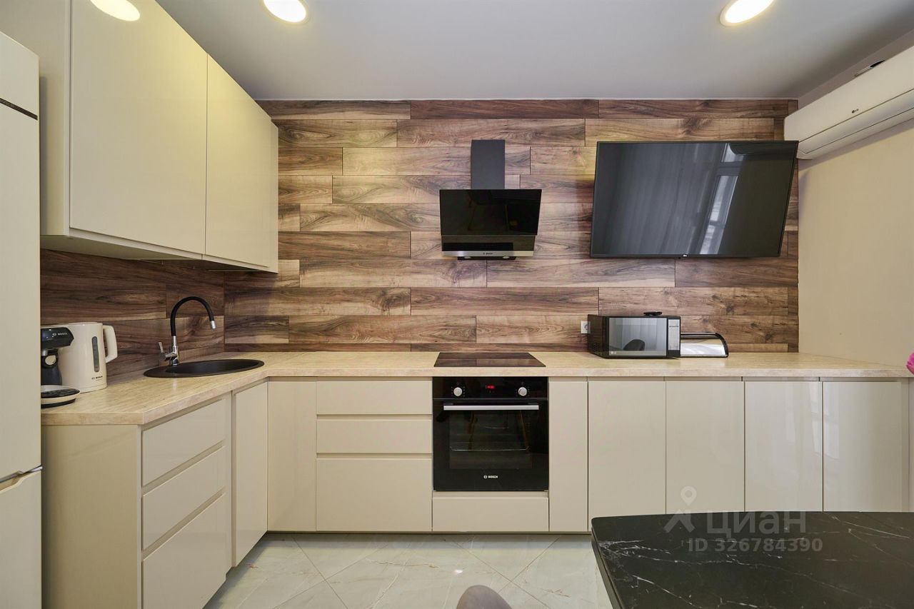 На кухне установлена встроенная техника Bosch с доводчиками