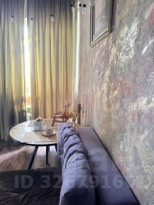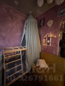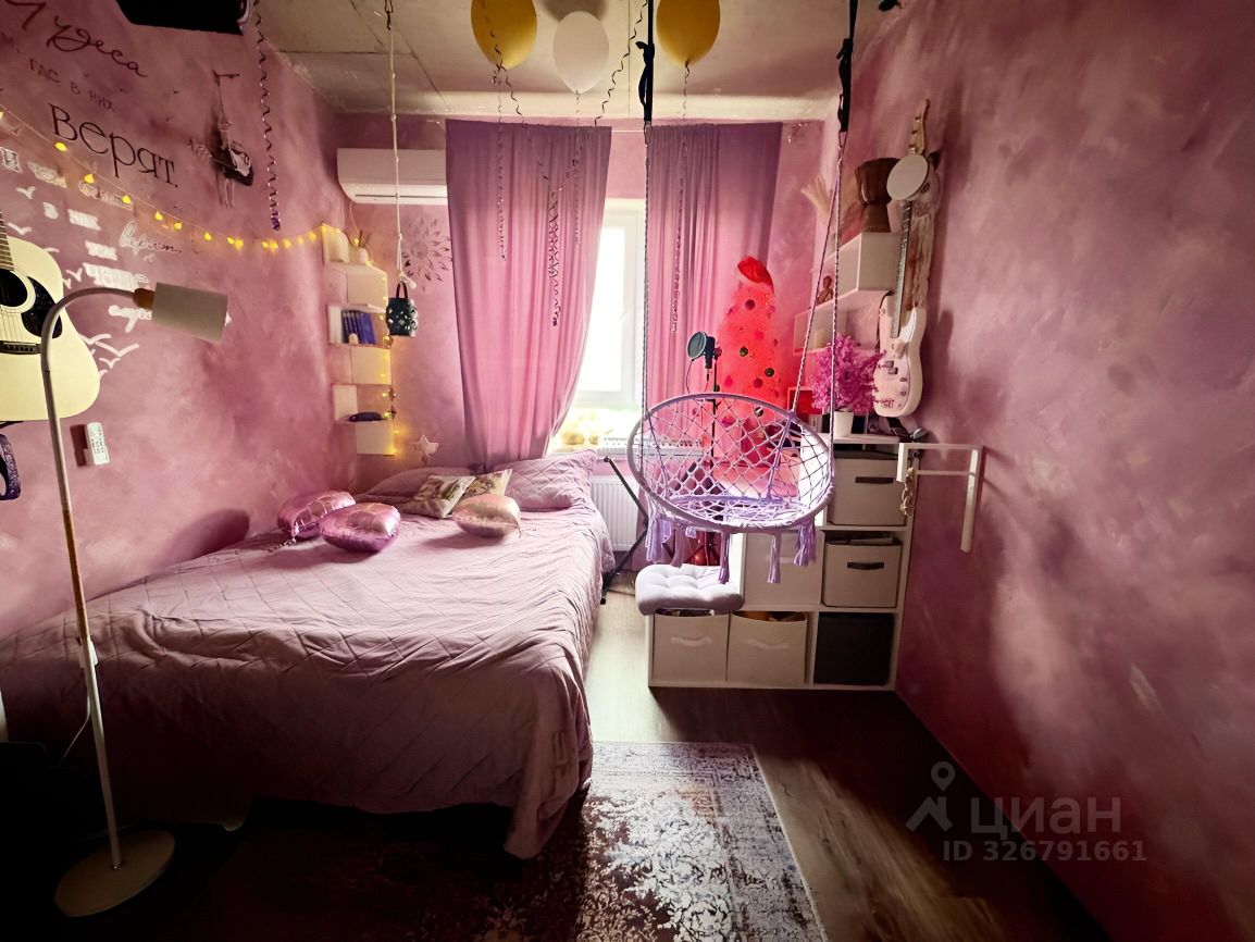Описание квартиры: спальная комната с большой кроватью с подвесным креслом, с высокими потолками 2,9м. имеет стены окрашенные акриловой краской с облачной техникой нанесения.