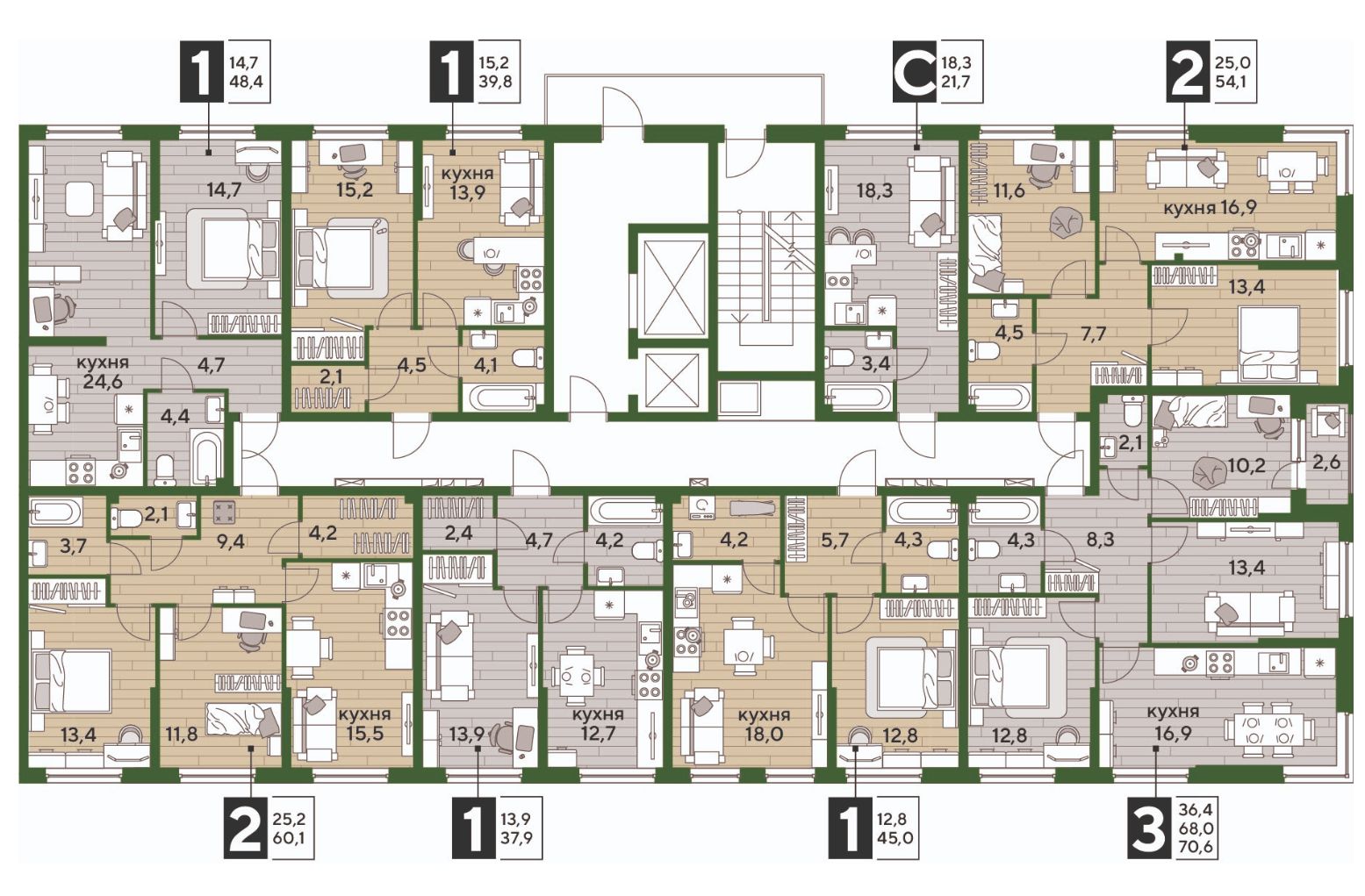 В продаже 1-комнатная квартира от застройщика! Мкр. "ДОГМА ПАРК" г. Краснодар, Литер 18 Срок сдачи: 2 кв. 2027, общей площадью 48.40 кв.м., на 2 этаже.