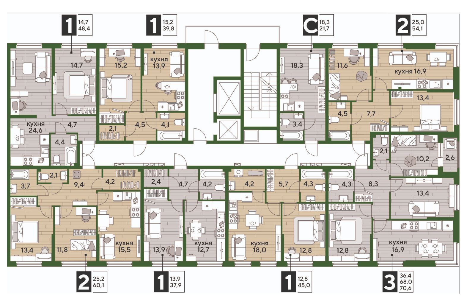 В продаже 1-комнатная квартира от застройщика! Мкр. "ДОГМА ПАРК" г. Краснодар, Литер 14 Срок сдачи: 2 кв. 2027, общей площадью 48.40 кв.м., на 2 этаже.