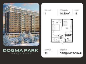 В продаже 1-комнатная квартира от застройщика! Мкр. "ДОГМА ПАРК" г. Краснодар, Литер 22 Срок сдачи: 2 кв. 2027, общей площадью 40.50 кв.м., на 16 этаже.