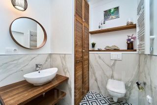 Два санузла: Решение вопроса утренних и вечерних часов пик. Гостевой санузел и совмещенный санузел в приватной зоне обеспечивают комфорт для всех членов семьи.