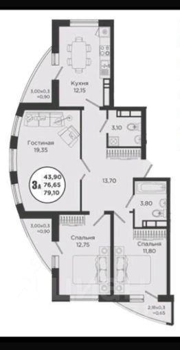 В квартире 2 спальни, гостиная, кухня, гардеробная, совмещенный санузел, 3 балкона.