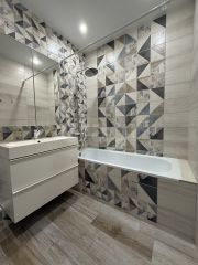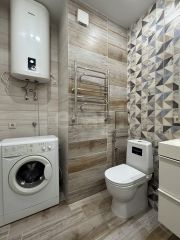 В квартире сделан современный ремонт в спокойных тонах. На полу положен ламинат, стены окрашены. В санузле стены и пол в плитке. Установлен водонагреватель.