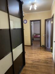 В Квартире очень удобная планировка , никаких узких коридоров , есть два застеклённых и отдельных балкона (5м2 и 8м2 ), две комнаты , кухня и раздельный сан.узел . Имеется 3 кондиционера , в отличном рабочем состоянии , практически вся мебель остаётся - Кухня с холодильником , огромный шкаф купе в коридоре , шкаф для обуви , стеллаж на балконе и мебель в спальне . В квартире местами можно выполнить косметический и мелкий ремонт , есть моменты следов жизни на мебели и на дверях.
