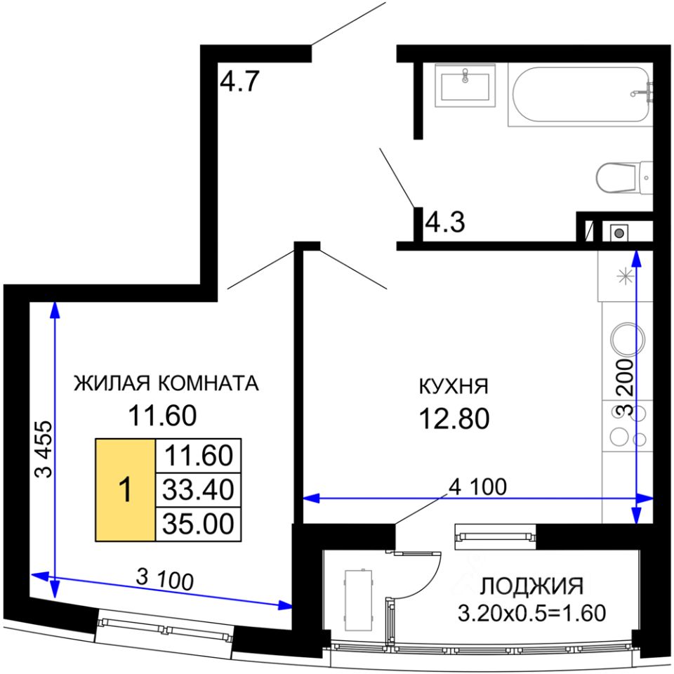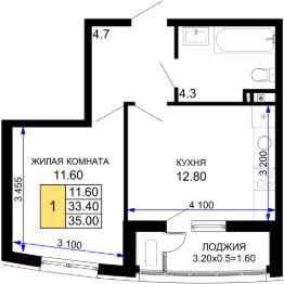 Общая площадь35 м²