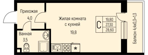 Общая площадь28,6 м²