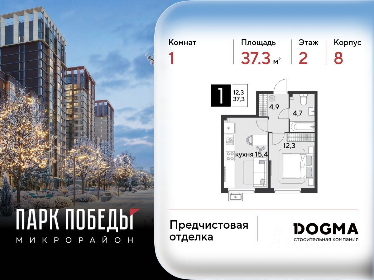 В продаже 1-комнатная квартира от застройщика! ЖК "Парк Победы 2", г. Краснодар, Литер 41